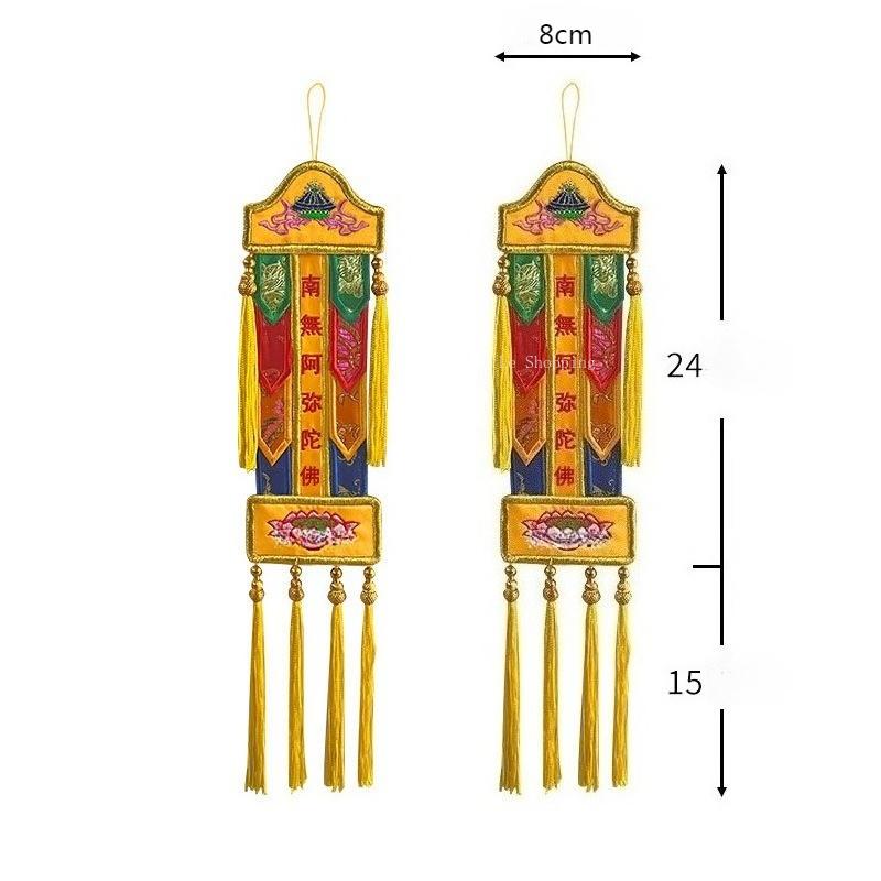 8*39cm Multicolored Brocade Small Flag Hanging Flag Embroidered Lotus Flower Nanwu Amitabha Buddhist Taoist Temple Decoration