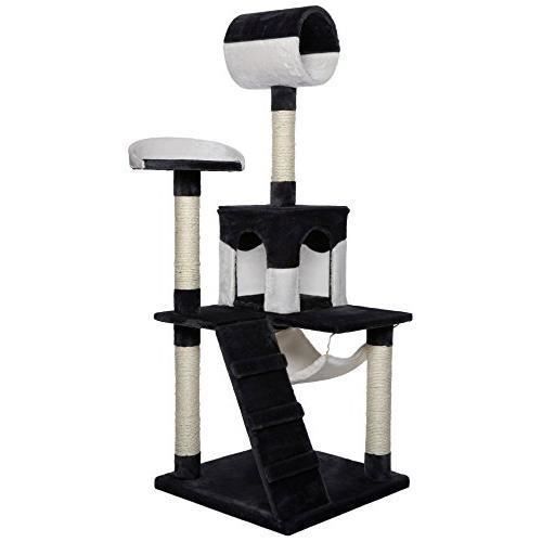 Arbre à chat - dibea - kb00357 - noir/blanc - 133 cm - griffoir en sisal
