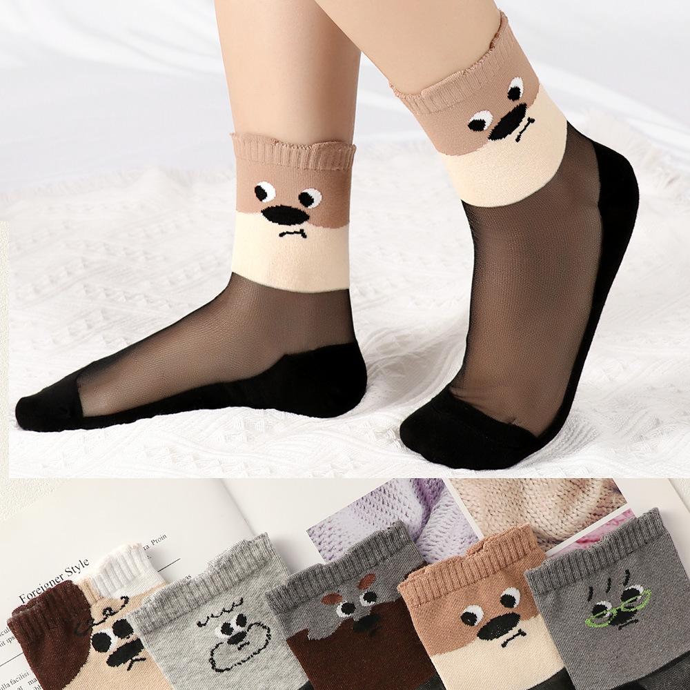 5 Pairs of Ultra-thin Socks with Cotton Soles and Silk Surfaces. The Cuffs Are Loose in Winter To Prevent Fraying. Cartoon Design.