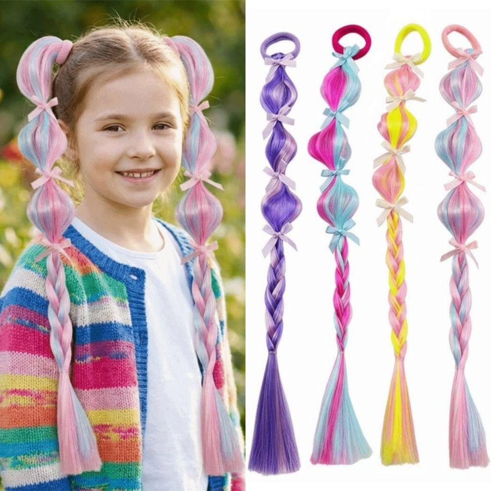 2Pcs Colorful Lantern Gourd Twist Bubble Braids Synthetic Girls Bow Wig Hairbands Daily