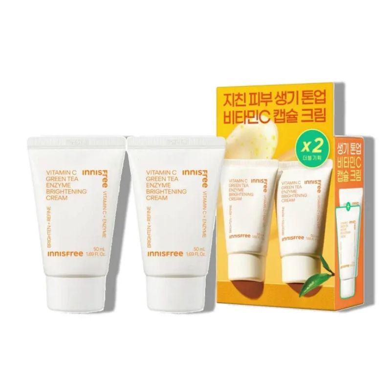 This brightening skincare set features a Vitamin C enzyme toning cream designed to help reduce the appearance of dark spots and uneven skin tone. The formula combines antioxidant Vitamin C with gentle enzyme care to promote a clearer, more radiant complexion. Its lightweight cream texture absorbs smoothly without stickiness while providing daily hydration. The special 50ml + 50ml tube set offers great value for consistent brightening care.
