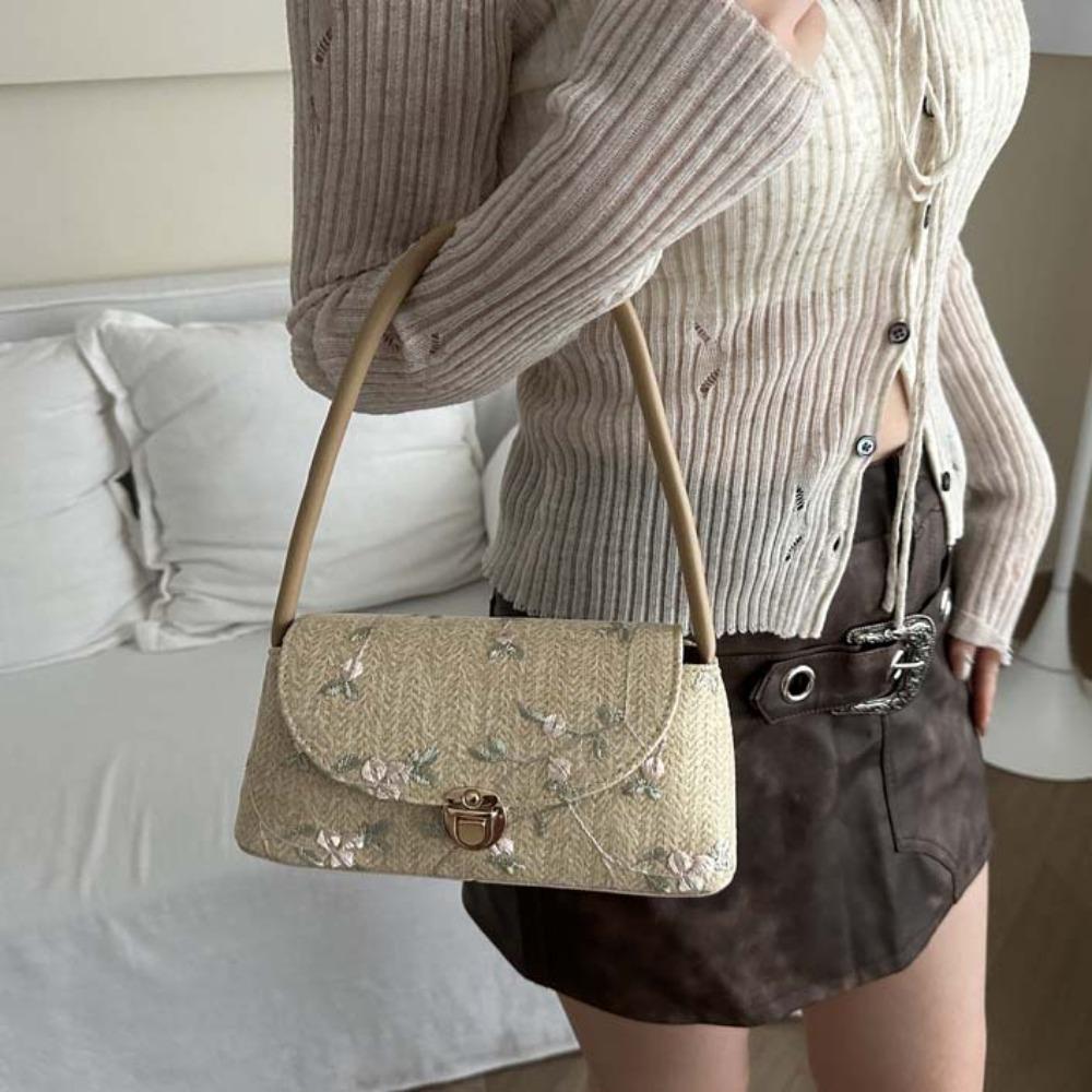 Elegant Beach Straw Hobo Embroidery Handbag Storage Bag Grass Woven Shoulder Bag Work