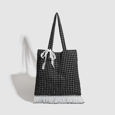Borsa di tela a scacchi Borsa tote da donna Borsa in pizzo di grande capacità