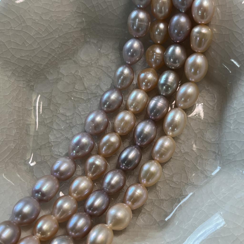 1String, Orange Natural Freshwater Pearls, Handmade Rice Pearl Beads for Jewelry Making DIY Crafts (Beads 7-8mm, Length 36cm)