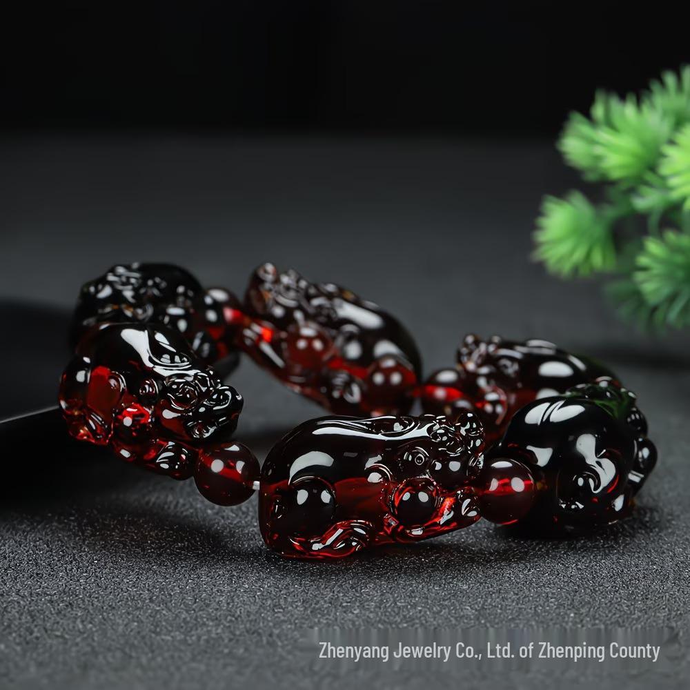 3D Red Amber Pixiu Bracelet for Wealth & Fortune, Unisex