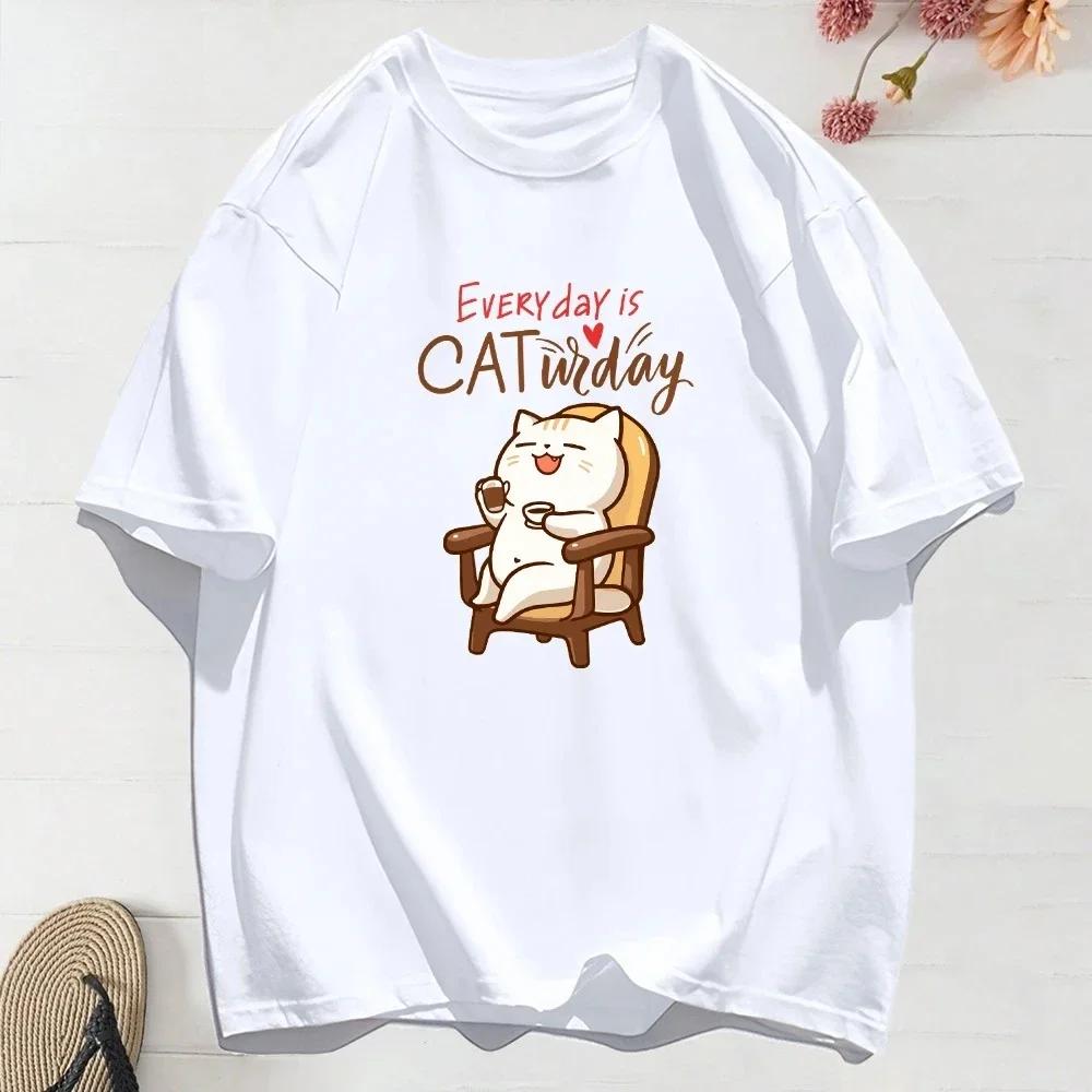 Cute cartoon cat animal fun printed Tshirt short sleeved round neck fashionable casual Womens Tshirt