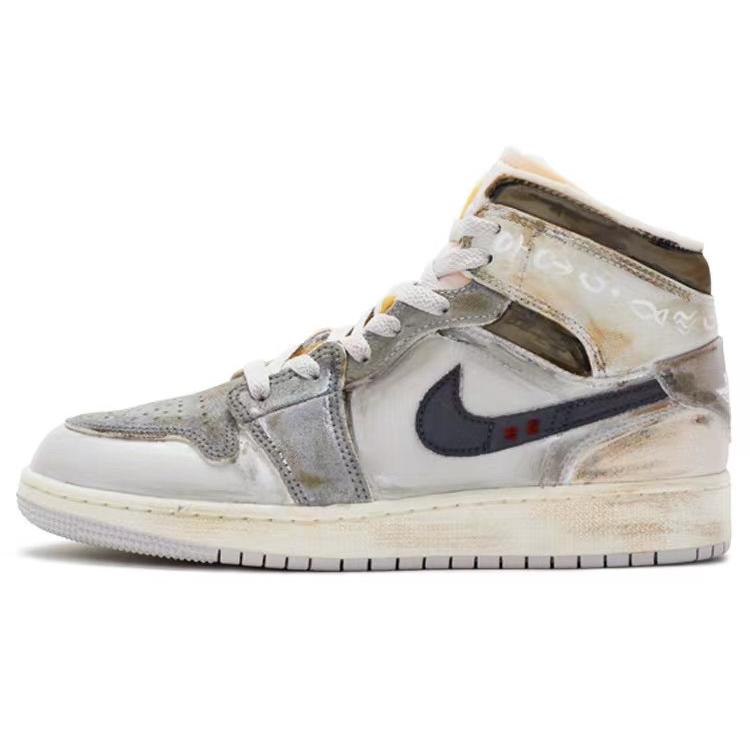 Jordan Air Jordan 1 Mid Cushioning Slip Resistant Abrasion Resistant High top Basketball Shoes Men's Gray White Brown DM9652-100(Teamr-)