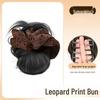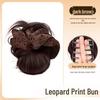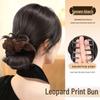 Retro Leopard Print Claw Clip Low Bun with Hair Tie and Natural Fluffy Flower Bud Design