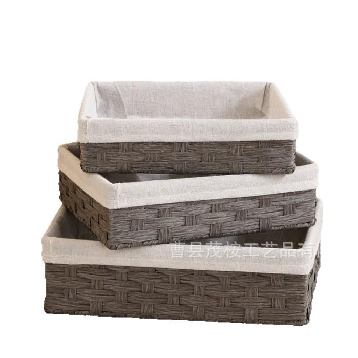 In Stock Blue Handmade Plastic Woven Storage Basket