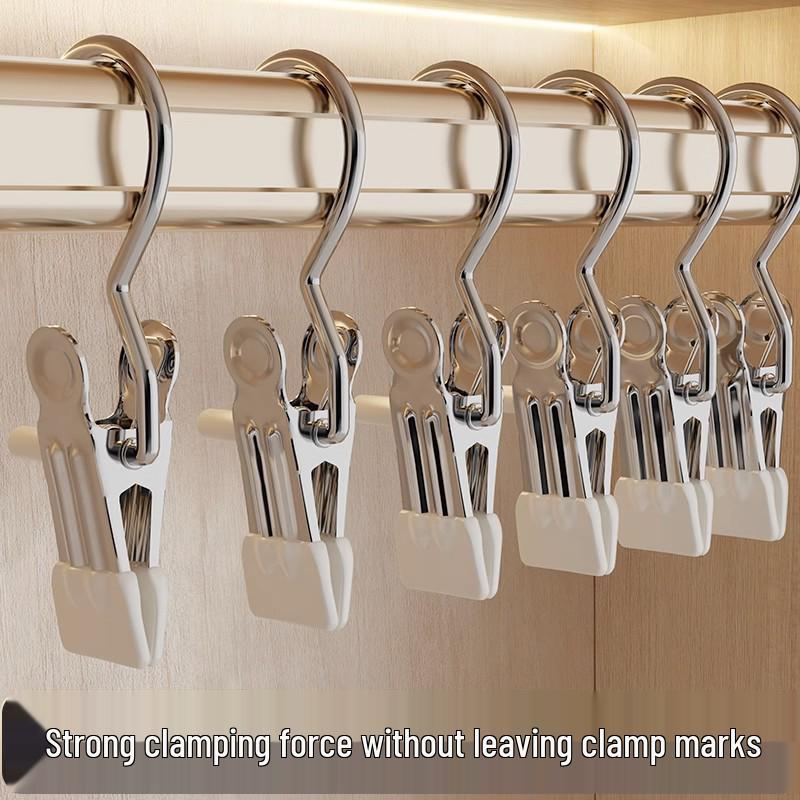 Stainless Steel Multi-Functional Hook Hanger with 3-Shaped Clip for Clothes, Socks, and Pants