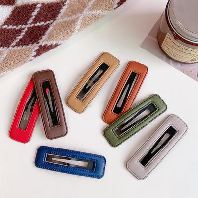 Candy Color Square Leather Hair Clip Pu Leather Side Clip Fashion Girl Hairpin Travel