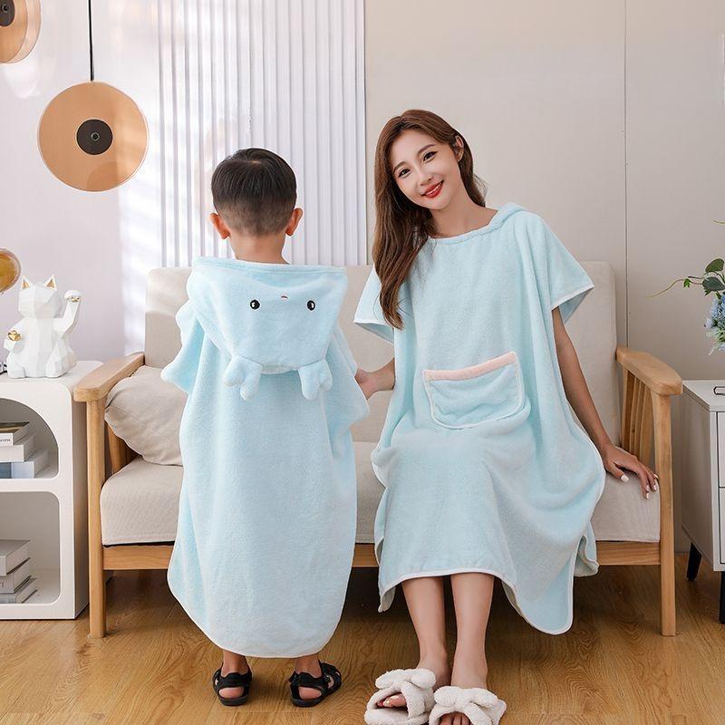 Coral Velvet Adult Children Bathrobe Women Wearable Bathrobes Bath Towels with Hood Thickened Absorbent Bath Towels