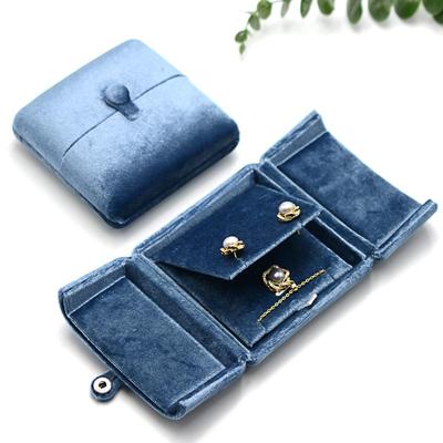 Scatola per gioielli in velluto blu nebbia: Apertura Doppia per Anelli, Orecchini, Collane, Braccialetti, Bracciali rigidi, Rosario e Sacchetto per Gioielli.