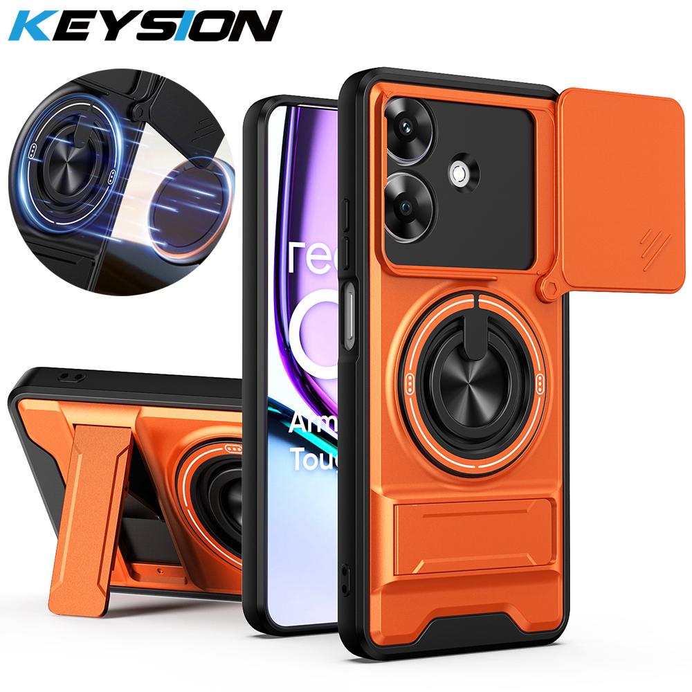 KEYSION Magnetic Phone Case for Realme Note 60 60X Slide Camera Protection Upright Kickstand 360° Ring Shockproof Back Cover