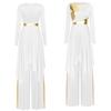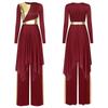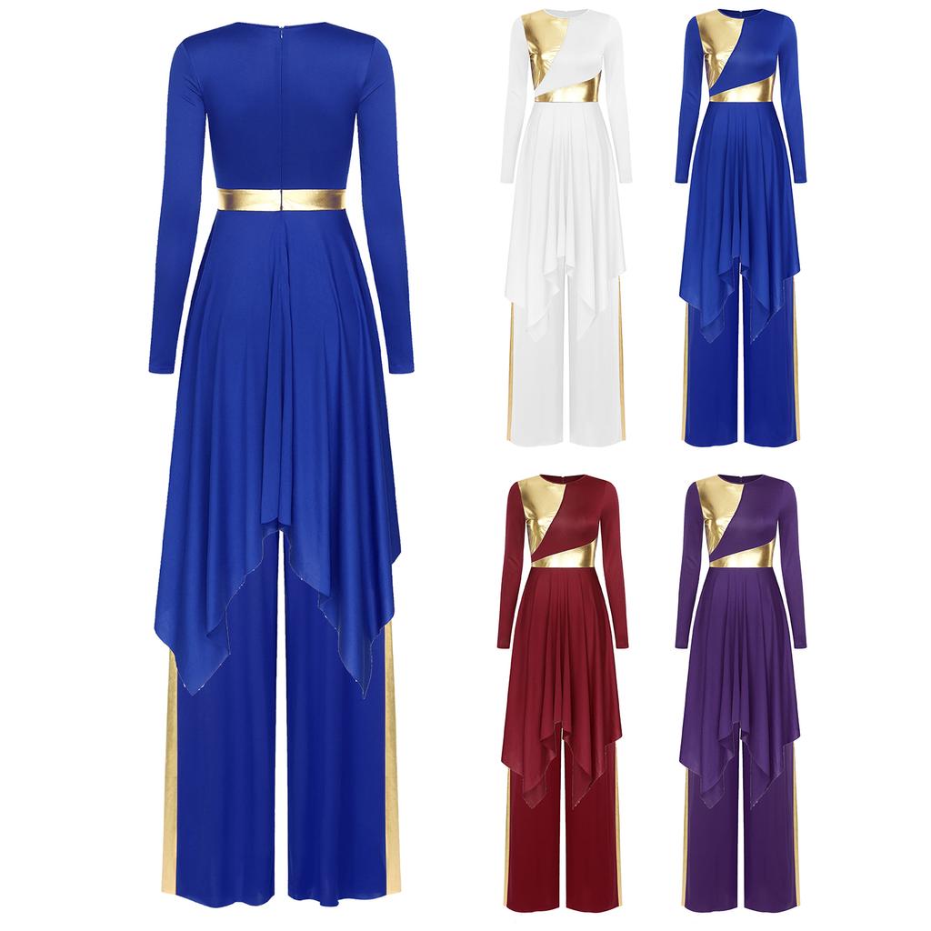Ladies Long Sleeve Liturgical Dance Dress Metallic Color Block Irregular Hem Wide Leg Pants Church Worship Wear