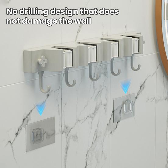 Presentazione del portascopa, un appendiscopa da parete autoadesivo di alta qualità che è sia impermeabile che antiruggine. Progettato con morsetti scorrevoli regolabili e ganci, questo porta-scopa garantisce una presa sicura per il manico della tua scopa o mocio, consentendo un facile inserimento e rimozione con una sola mano.