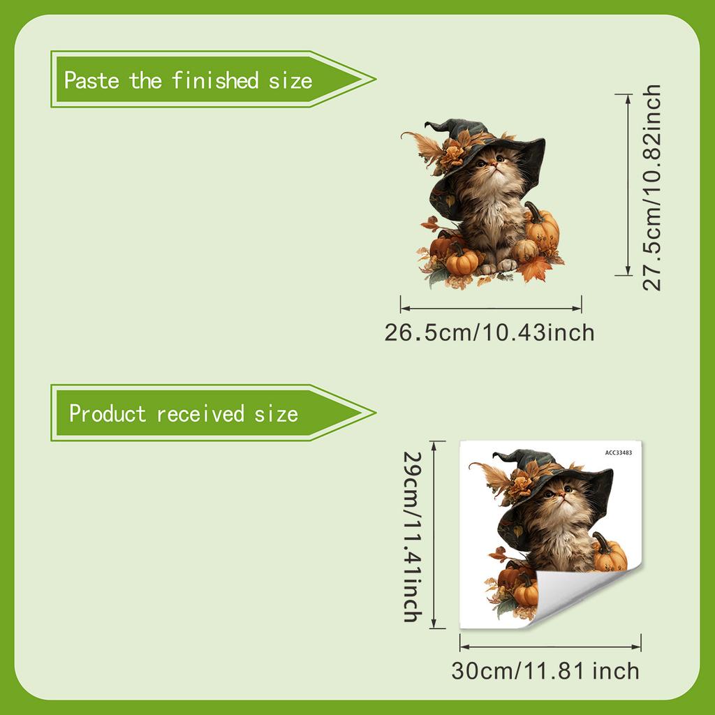 Retro-style Autumn Cat Window Sticker with Warm Elements. Self-adhesive and Seamless Sticker.