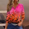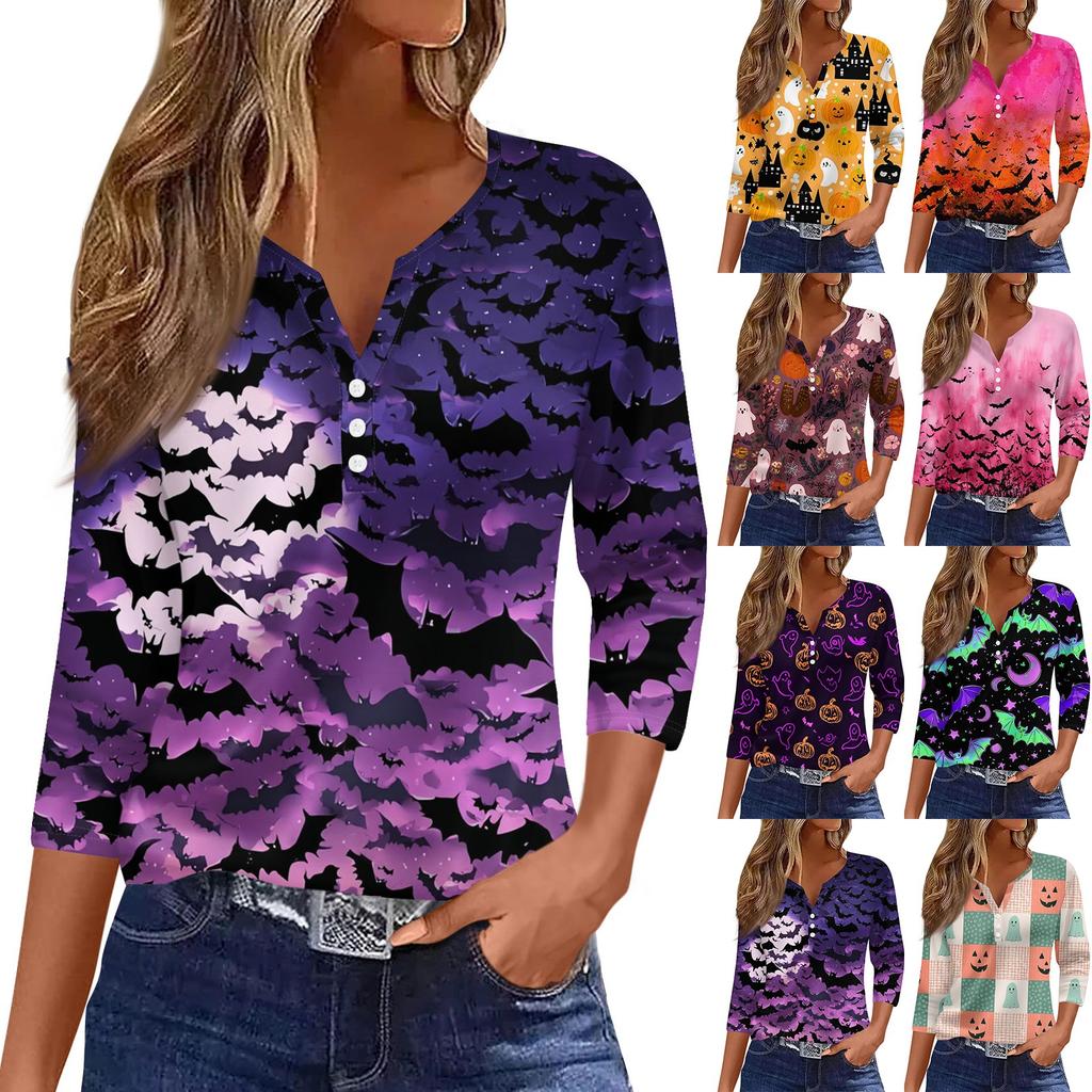 Women's Casual Fashion V-neck Loose Versatile Halloween Print Three-quarter Sleeve Top