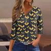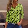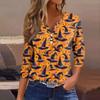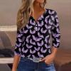 Women's Fashion Casual Halloween Printed V-Neck Short Sleeve Decorative Button Three-quarter Sleeve T-Shirt Top