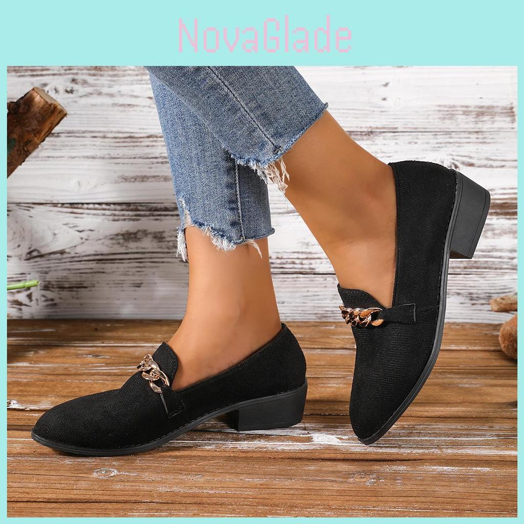 Comfortable Chunky Heel Slip-on Shoes For Women With Stylish Metal Chain Design