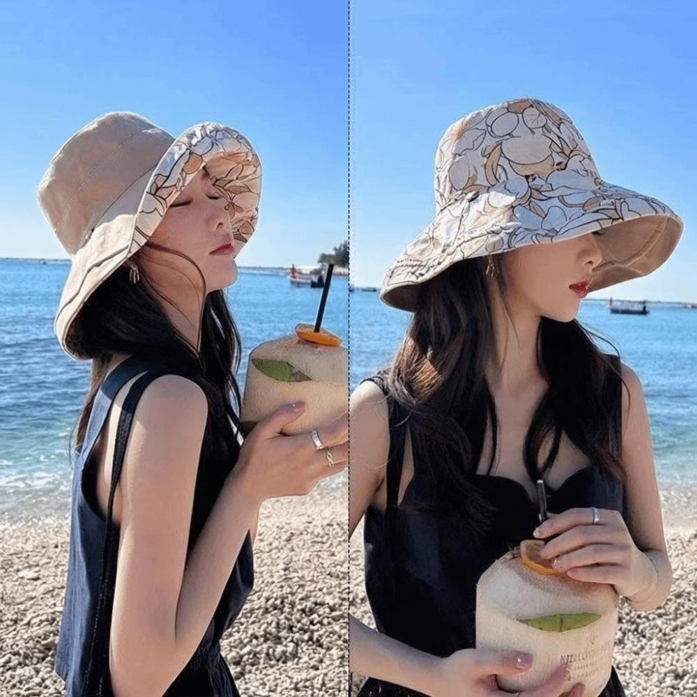 Double-Sided Women Fisherman Hat Flower Print Sunscreen Visor Cap Portable Summer Sun Hat Travel