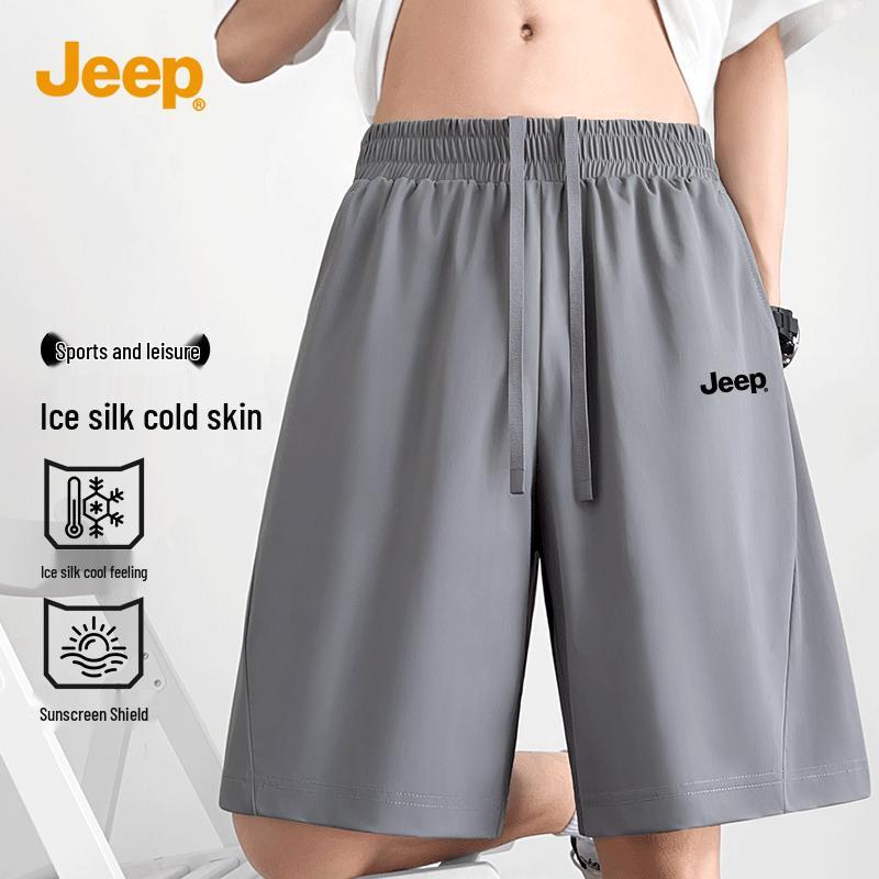 Experience ultimate comfort and performance with JEEP Men's Ice Silk Sports Shorts. Designed for the 2026 summer collection, these lightweight, breathable, and quick-drying shorts offer essential sun protection, making them perfect for outdoor activities like running or casual wear. Made from a durable blend of nylon and spandex, they feature an elastic waistband with a drawstring for a secure and comfortable fit.