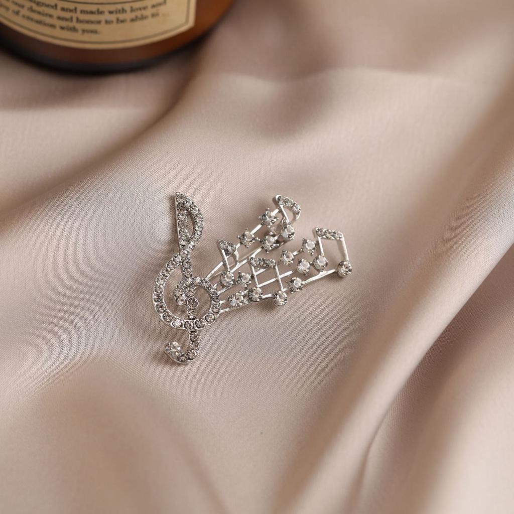 Alloy Diamond-encrusted Musical Note Brooch For Women, Exuding Elegance And Sophistication.