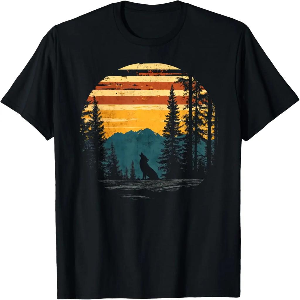 Graphic Tee Wolf Nature Forest Wildlife Retro Sun Vintage T-Shirt