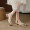 2026 New Retro Style Summer Women Sandals Fashion Elegant Weave Cover Toe Shoes Ladies Comfort Low Heel Beach Vacation Sandalias