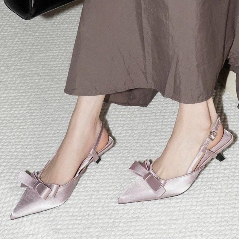 2026 Scarpe Singole con Fiocco Delicato in Raso di Seta da Donna Borsa a Tracolla Posteriore Sandali con Temperamento Bellissimo