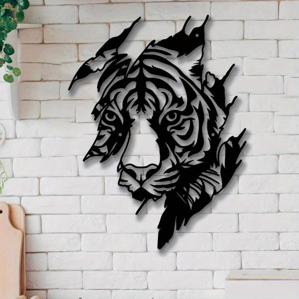 Metal Tiger Wall Sculpture Iron Animal Art Outdoor Indoor Decor for Living Room Yard Balcony Garden