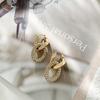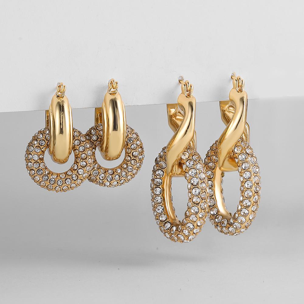 Classic Gold Plated Twisted Huggies Earrings with Full CZ Zirconia Geometric Oval Circle Charms Drop Dangle Earring Punk Jewelry