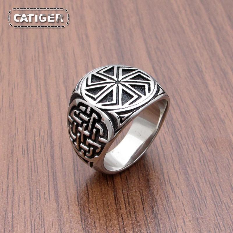 Punk 316L Stainless Steel Vikings Slavic Wheel Amulet Ring Scandinavian Runic Vikings Rings Jewelry