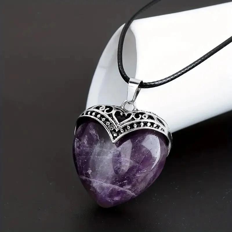 Heart Crystals Natural Stone Necklaces Pendants Women Amethysts Crystal Healing Necklace Heart Necklace Natural Stone pendant