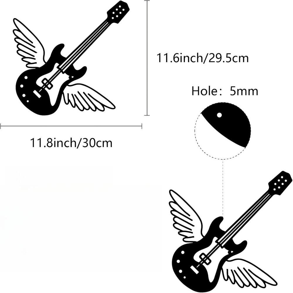 Black Metal Guitar Wings Wall Art Sculpture, Hollow Iron Wall Decor, Rustic Music Themed Hanging Sign for Living Room Home Office 12x12 Inch