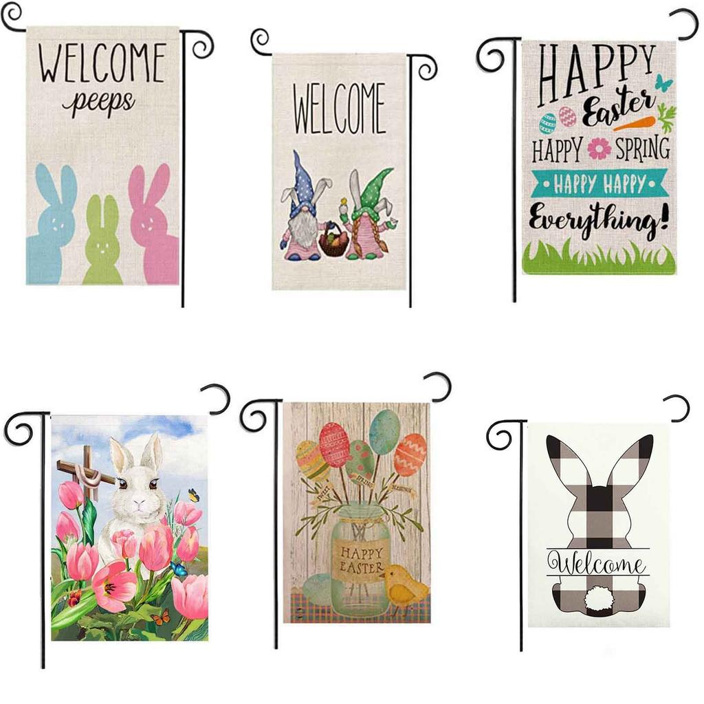 Welcome Bunny Eggs Decor Cute Spring- Easter Garden Flag