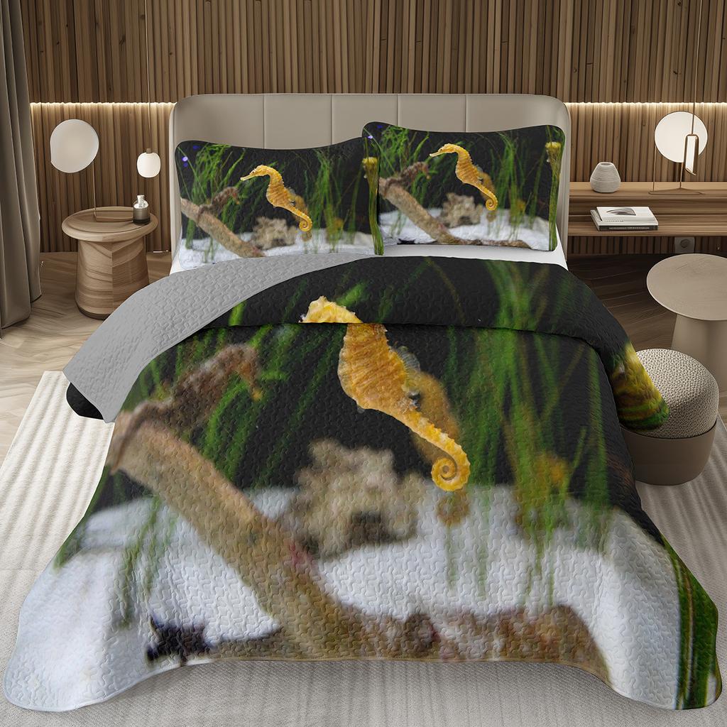 Comforter Seahorse Queen Size 3D Seahorse Printed Bedding Set Ocean Animal Quilted Marine Mediterranean Style Bed