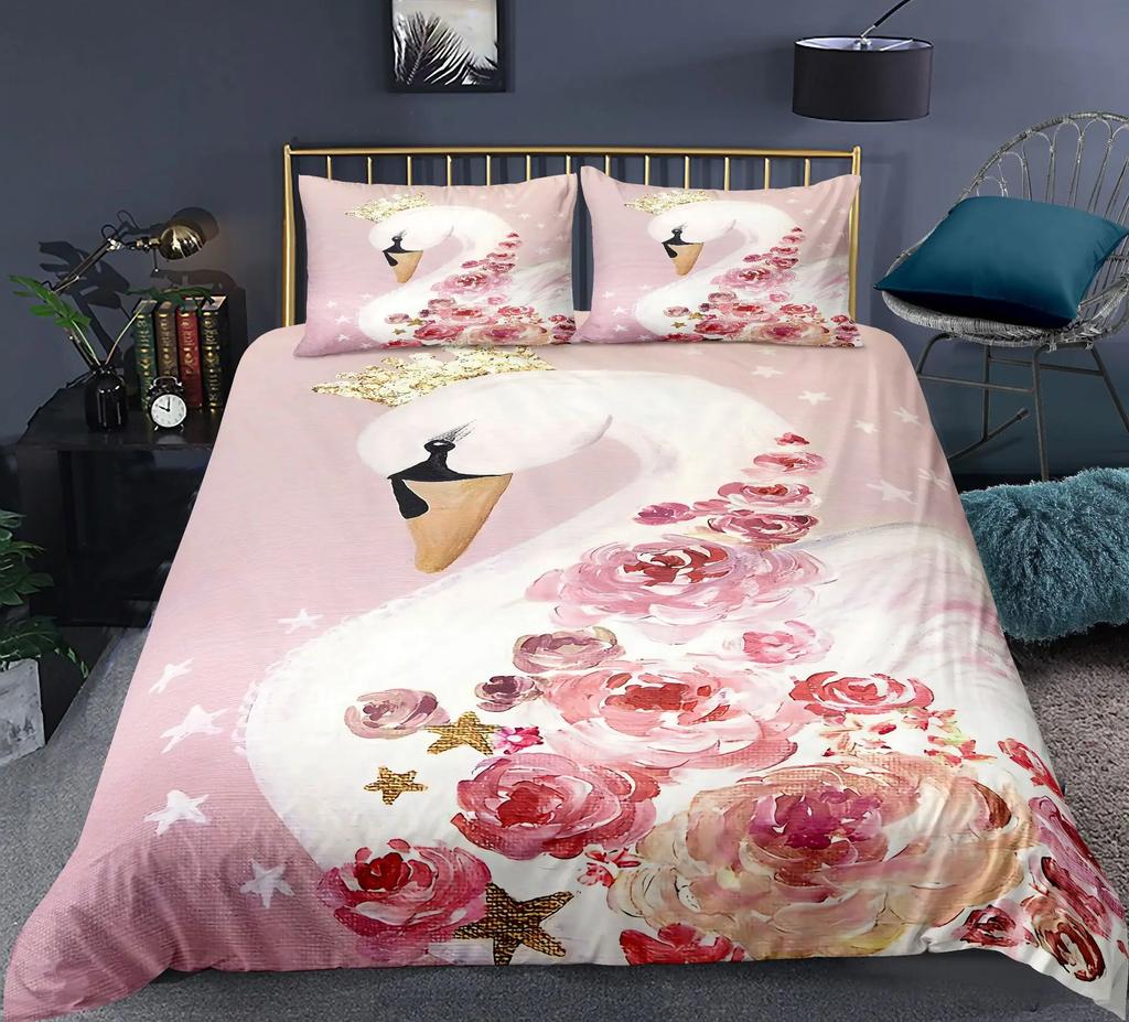 Comforter Swan Rose Crown Polyester Sweet Girl Children Romantic Pink Red Queen King Size For Bedroom Decorations