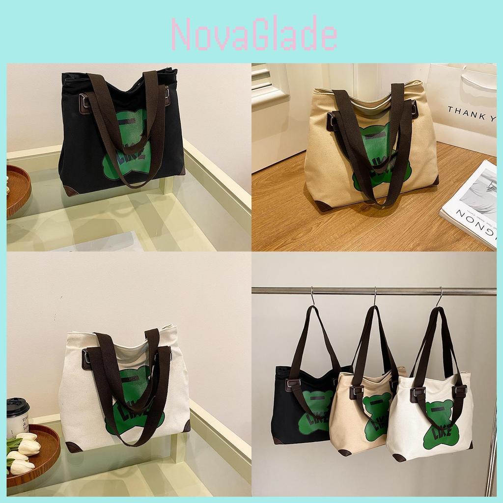 Adorable Cartoon Canvas Tote Bag Large Capacity Casual Handbag For Students