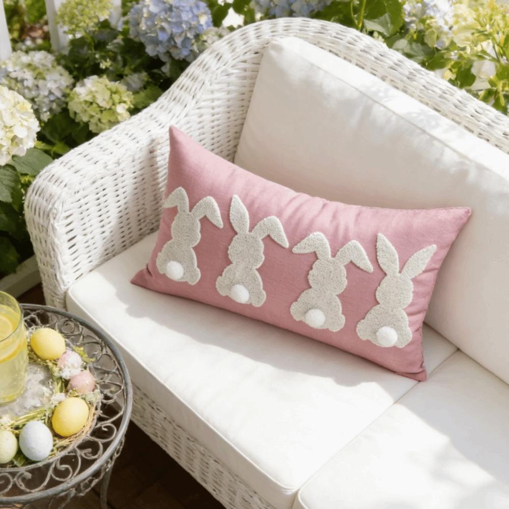 Embroidered Throw Pillow Cover Rectangular Waist Cushion Cover Easter Bunny Pillowcase Sofa