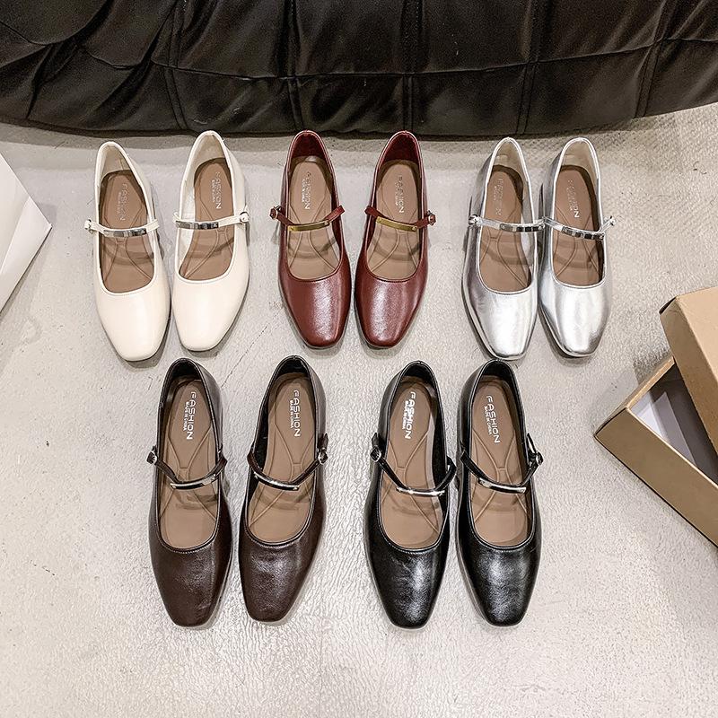 French Square Head Mary Jane Shoes Women'S Flat Bottom New Retro Soft Leather Low Heel Single Shoes Light Mouth Fashion Women'S Shoes
