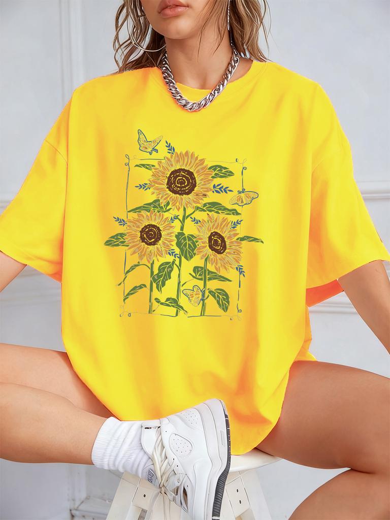 Sunflower Oil Printing Prints TShirts Womens Summer Cotton Short Sleeve T Shirt Loose ONeck Comfortable Tops Casual Clothes
