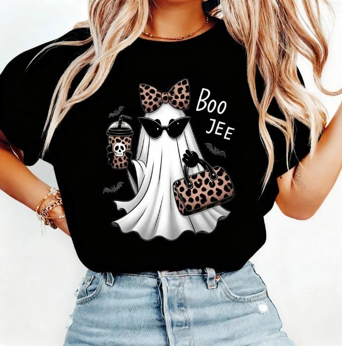 1pc Halloween Fashion Ghost Tshirt Leopard Pattern Accessories Halloween Fashion Elf Cotton Shirt Fashion Cute Horror Top