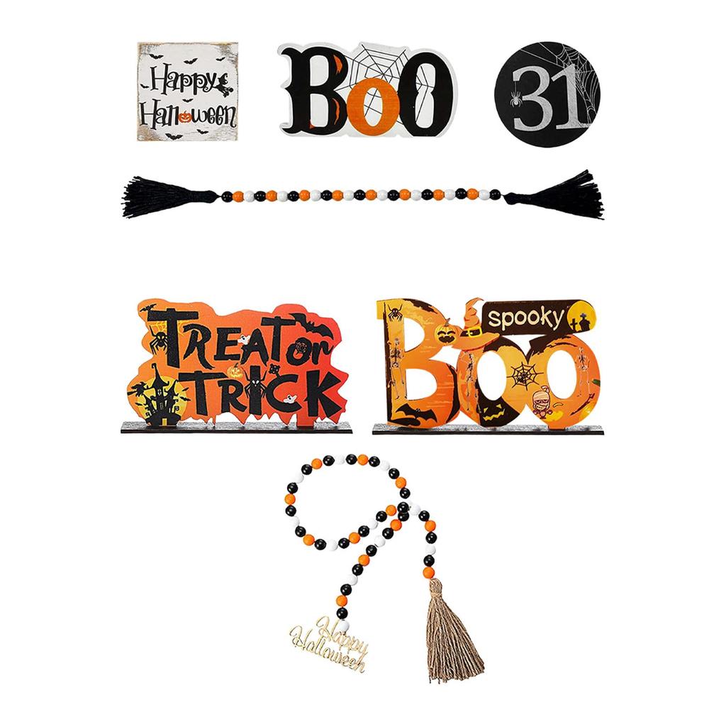 Halloween Tiered Tray Decor Bead Garland Creepy Ornament Spooky Rustic Halloween Decor Wooden Signs for House Showcase Shelf