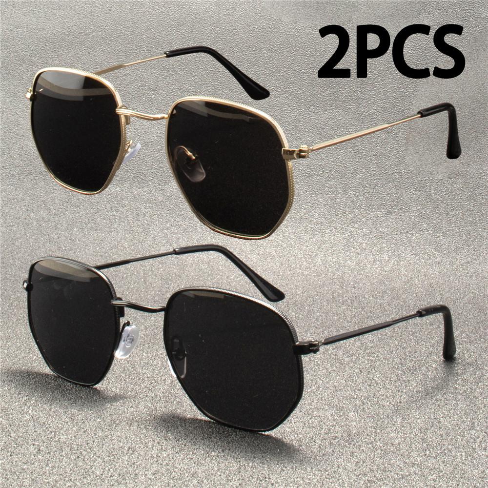 2PCS Retro Metal Male Sunglasses Brand Design Sun Eyeglasses Female Women Classical Driving Eyewear Oculos De Sol