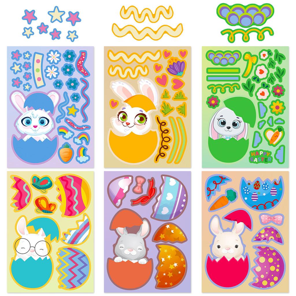 6PCS/Pack Easter Day Cartoon Rabbit Egg Stickers Bunny Make A Face Children's DO IT YOURSELF Puzzle Decals Fun Play Learning