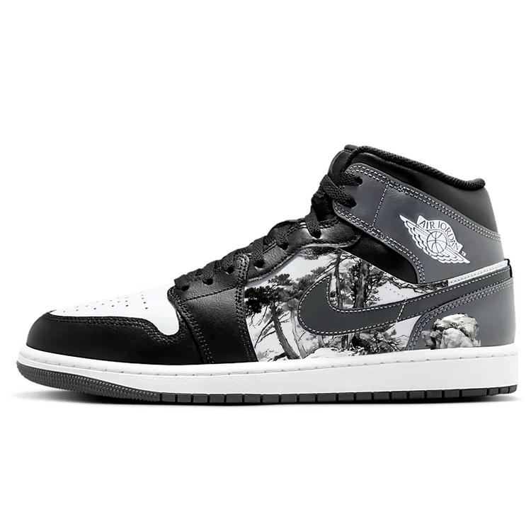 Jordan Air Jordan 1 Cushioning Slip Resistant Abrasion Resistant Mid top Vintage Basketball Shoes Unisex Black White DQ8426-001(Team56-)