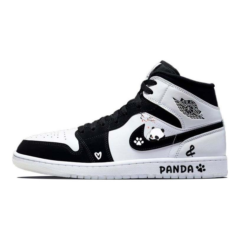 Jordan Air Jordan 1 SE Waxberry Tarepanda, Lazy Panda Comfortable Mid top Vintage Basketball Shoes Men's Black White DH6933-100(Team56-)