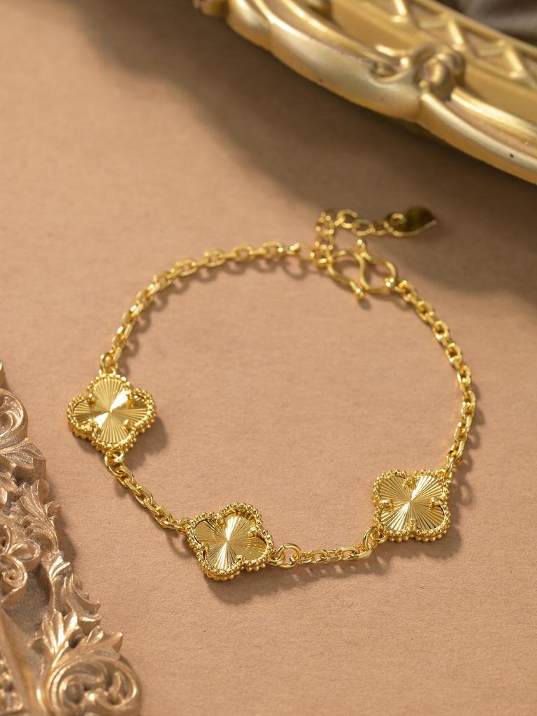 Vietnamese Gold-Tone Four-Leaf Clover Bracelet for Women: Luxurious, Elegant, Luck-Infused Five-Petal Design
