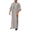 Abbigliamento musulmano da uomo estivo Camicia a tinta unita con bottoni a vestaglia ampia